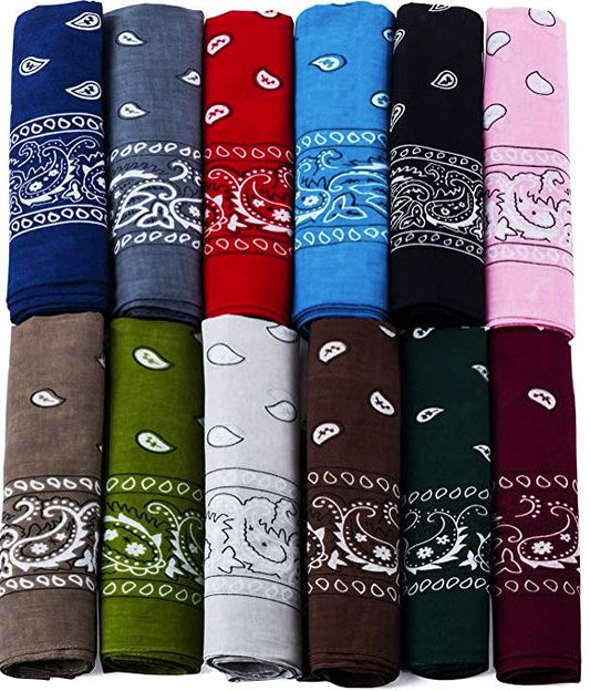Paisley Cotton Bandanas Dozen Pack 22X22 (16 Colors)